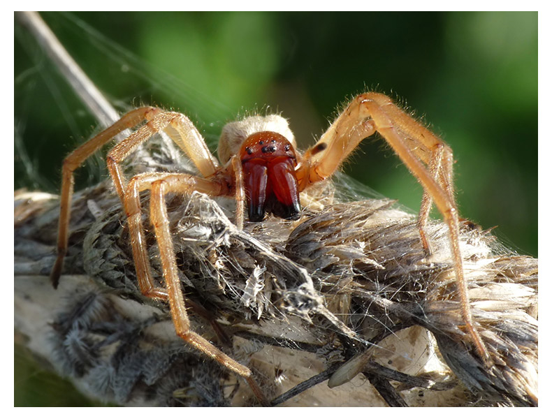 * The common names of these spiders are: Amaurobius ferox:no species name available, the family Amaurobiidae may be called EN: “meshweb weavers”, GER: “Finsterspinnen”; Cheiracanthium punctorium:EN: “yellow sac spider”, GER: “Ammendornfinger”; Tegenaria atrica and Malthonica ferruginea:no species names available, the genera may be summarised as EN: “house spider”, “dust spider”, “grass spider”; GER: “Hausspinne”, “Kellerspinne”, “Trichternetzspinne”, “Winkelspinne”, FRA: “tégenaires”; Zoropsis spinimana: no species name available, the family Zoropsidae may be called: EN: “ground spiders”, GER: Wolfsspinnen-ähnliche Kammspinne |