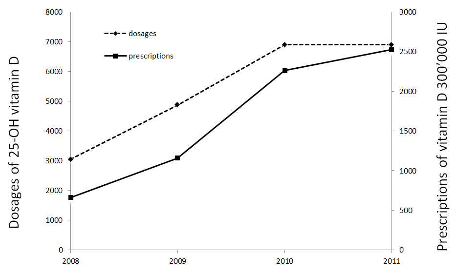 Evolution of vitamin D dosages and prescriptions between 2008 and 2011 in Lausanne University Hospital