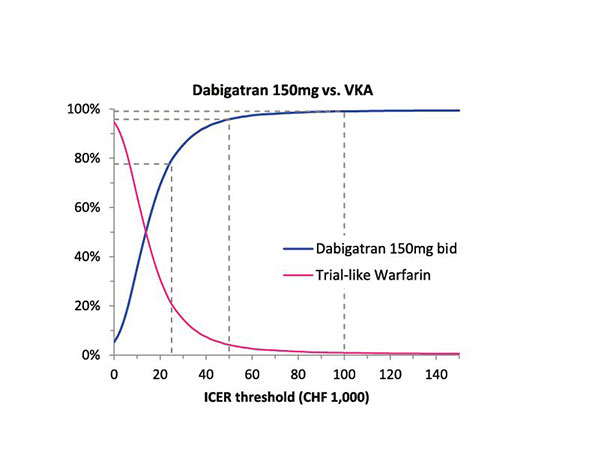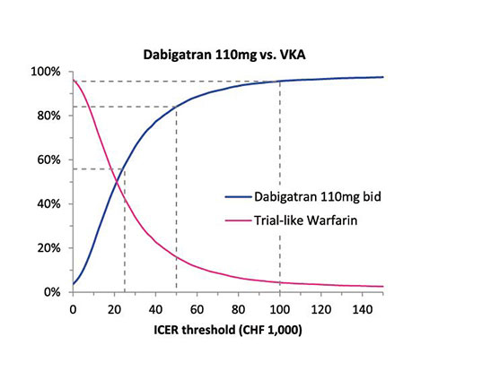 Cost-effectiveness analysis is needed to determine whether the preventive effects and the savings of INR monitoring costs are worth the higher price of dabigatran. Studies in other countries have shown that dabigatran is cost-effective among AF patients with a medium to high risk of stroke when compared to a well-adjusted VKA [2, 11–14] . As these results are dependent on the local standard of care, local prices and peculiarities of the local health care system, they cannot be transferred to other countries. This may be particularly important in the context of the Swiss health care system with its comparably high per-capita health care expenditures.