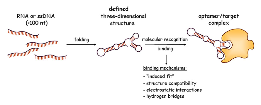Schematic view of the aptamer molecular recognition principle (Graphic: Regina Stoltenburg, UFZ).