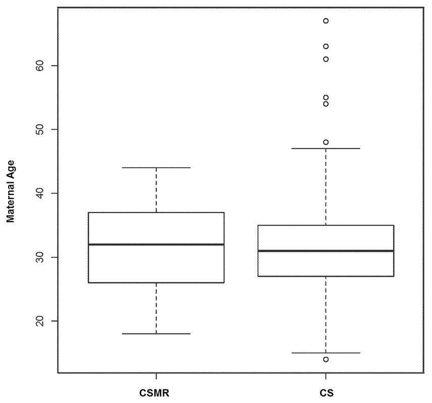 Comparison of maternal age in mothers with caesarean section on maternal request (CSMR) and all mothers with caesarean section (CS) was not significant (p = 0.1844).