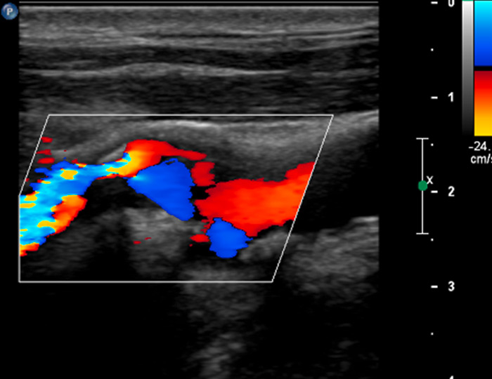 The use of carotid CEUS has also been proposed to assess microvasculature within the inflamed vessel wall in patients with large-vessel vasculitis [35, 36]. In a patient with a long, smooth, homogeneous, and concentric thickening of the carotid arterial wall on B-mode ultrasound, typical for Takayasu arteritis, additional CEUS imaging revealed a large amount of contrast agent microbubbles within the vessel wall thickening. This neovascularisation may represent the initial inflammatory phase of Takayasu arteritis. Further case reports confirmed a marked arterial wall enhancement with direct visualisation of multiple moving microbbubles in the early phase of Takayasu arteritis. Arterial wall enhancement clearly decreased 6 months after beginning an anti-inflammatory therapy. In a recent small prospective case series of patients with Takayasu and giant cell arteritis, carotid CEUS imaging not only improved the visualisation of the lumen border, but also allowed the assessment of carotid wall vascularisation, which could be a useful marker of disease activity [37]. Therefore, CEUS imaging seems to be a valuable tool for the diagnosis and follow-up of inflammatory vessel diseases as a non-invasive and easily reproducible measuring technique for arterial wall inflammation and treatment evaluation.