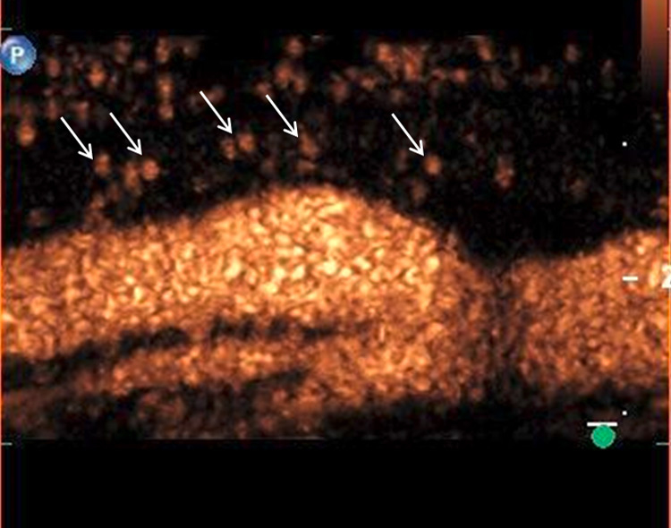 Furthermore, by using site-targeted microbubbles which are retained and imaged within regions of disease by ligand-directed binding after intravenous injection, CEUS also has the potential to image non-invasively the molecular or cellular profile of different tissues in the future [51]. These newer techniques can further enhance and expand the diagnostic capabilities of current vascular imaging by assessing specific molecular processes that play a role in the pathophysiology of vascular disease. CEUS molecular imaging has been shown to provide information on disease development and progression in atherosclerosis, tissue ischemia, thrombosis and angiogenesis in various animal models. However, these studies in vascular diseases using site-targeted microbubbles are still on a pre-clinical level and have not yet found the way into the clinical arena.