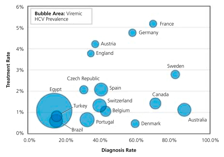 HCV prevalence, diagnosis and treatment rates in 2013 (from: Dore GJ, Ward J, Thursz M. Hepatitis C disease burden and strategies to manage the burden. J Viral Hepat. 2014;21(Suppl 1):1–4, reprint with permission from John Wiley and Sons).