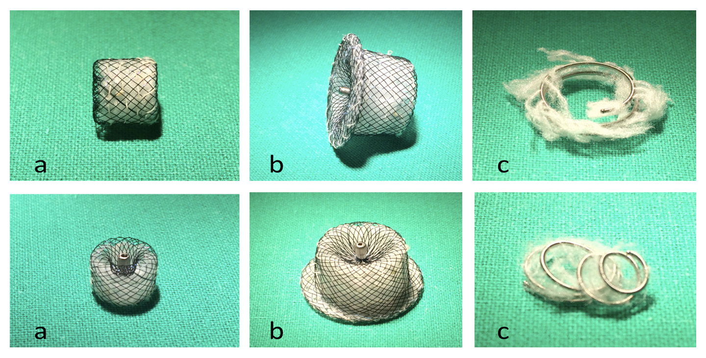 Examples of Hyperion™ vascular plugs (a, b) and a Tornado® Embolization Coil (c)
