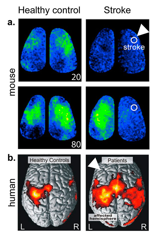 Comparison of neuronal connectivity after stroke in mouse and human.