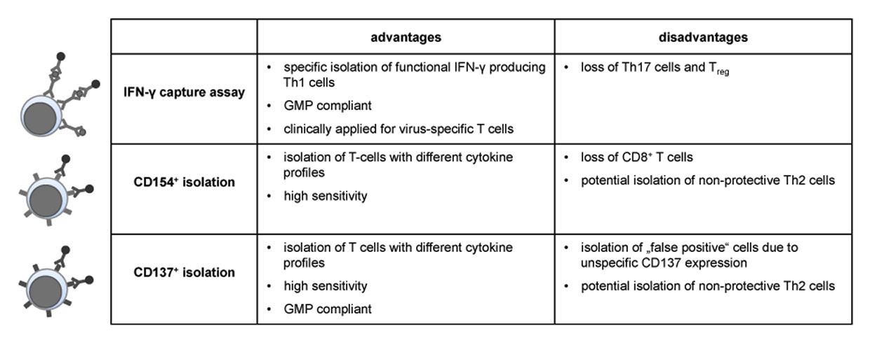 Advantages and disadvantages of different enrichment strategies for antigen-specific T cells.