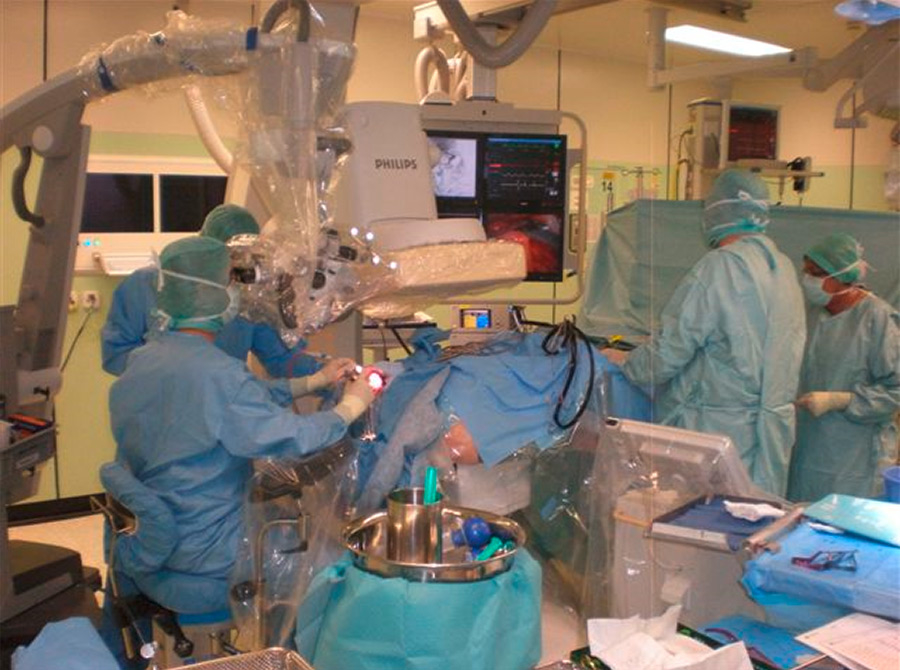 Treatment of an intracranial aneurysm in the hybrid operating room.