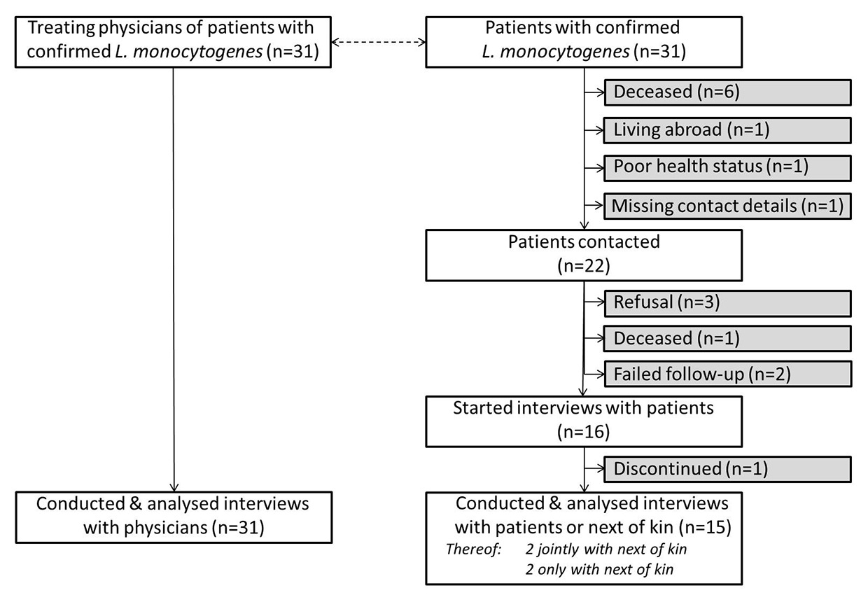 Participation of patients with confirmed L. monocytogenes infection and their treating physicians in the epidemiological outbreak investigation, Switzerland, 30 January to 11 May 2014.