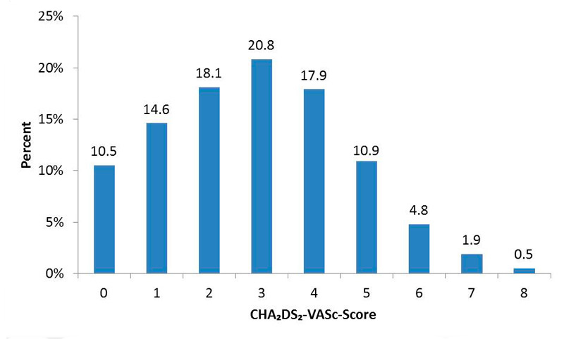 Figure 1 CHA2DS2-VaSc score distribution at baseline.
