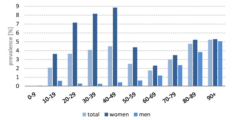 Figure 4 Prevalence of parenteral iron substitution in different age groups for both sexes in Switzerland, 2012 to 2014.