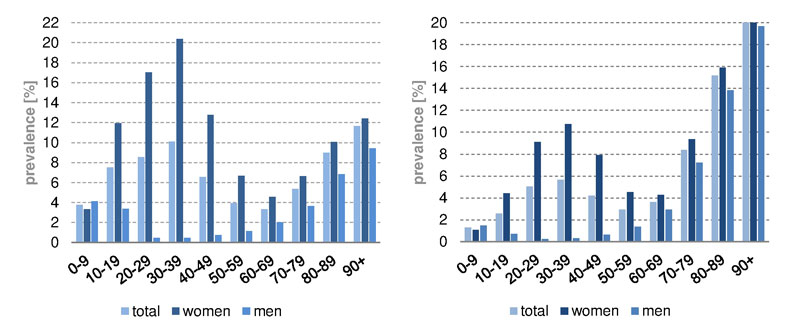 Figure 2 Prevalence of oral iron substitution in different age groups for both sexes in Switzerland (left) and the UK (right), 2012 to 2014.