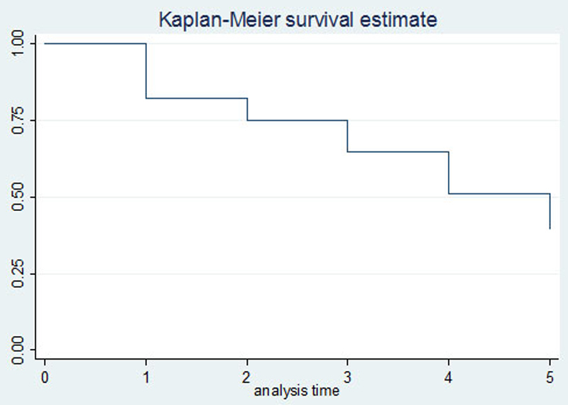 Figure 2 Kaplan Meier 5-year survival curve for patients listed in 2009.