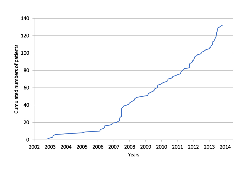 During the 12-year study period, a statistically significant increase in the number of patients per year was noted (p <0.01) (fig. 1).