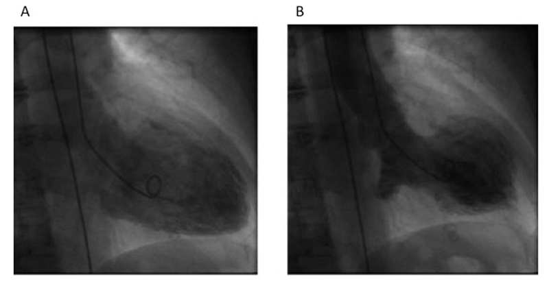 Figure 3 Left ventricular angiography showing a midventricular Takotsubo pattern.