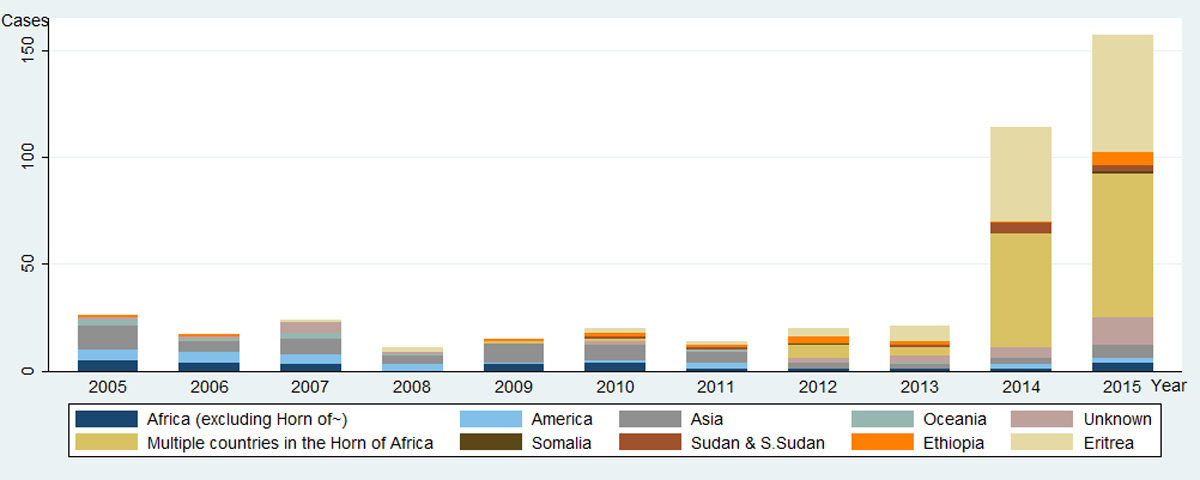 “Multiple countries in the Horn of Africa” represents ≥ 2 countries among Eritrea, Ethiopia, Somalia, Sudan and South Sudan.