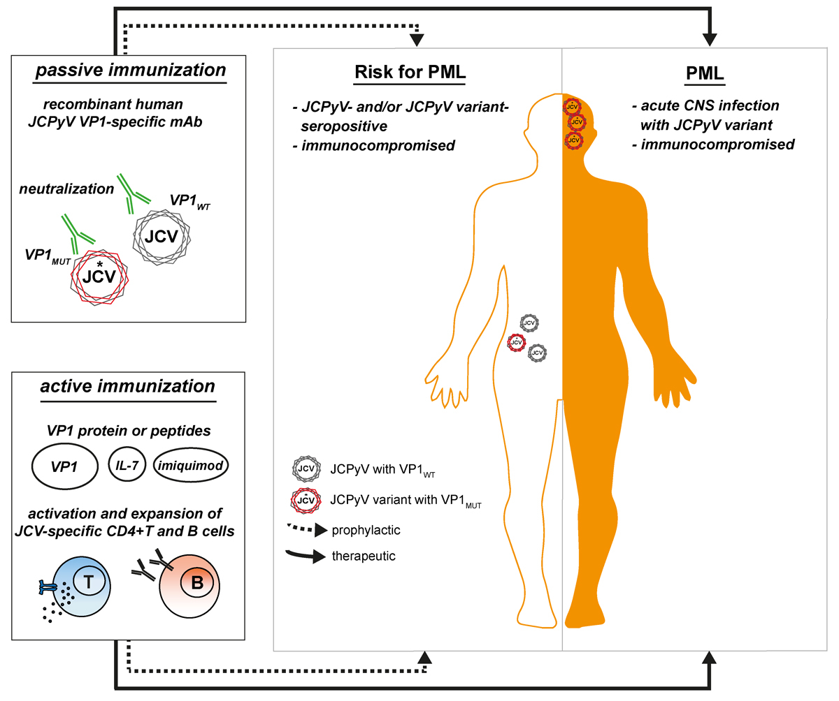 Active and passive immunisation approaches for the prophylactic and therapeutic treatment of PML are summarised in figure 2.