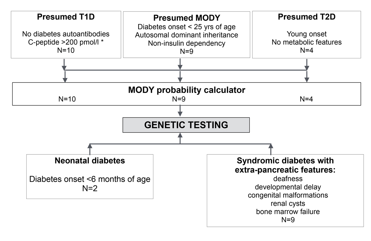 34 Thanabalasingham G , Pal A , Selwood MP , Dudley C , Fisher K , Bingley PJ , et al. Systematic assessment of etiology in adults with a clinical diagnosis of young-onset type 2 diabetes is a successful strategy for identifying maturity-onset diabetes of the young. Diabetes Care. 2012;35(6):1206–12. doi:.https://doi.org/10.2337/dc11-1243