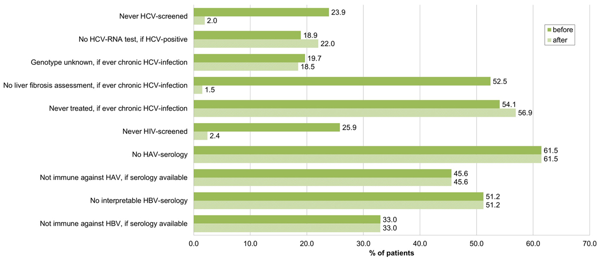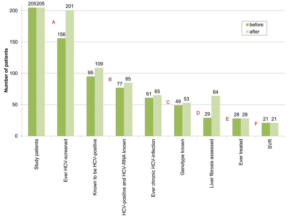 HCV = hepatitis C virus; SVR = sustained virological response; before = before HCV rapid tests and Fibroscan® within our study; after = after HCV–rapid tests and Fibroscan® within our study