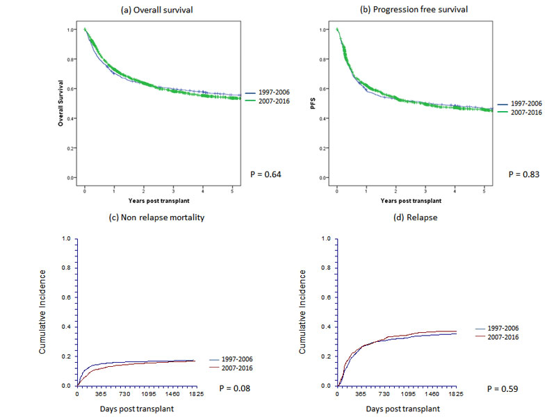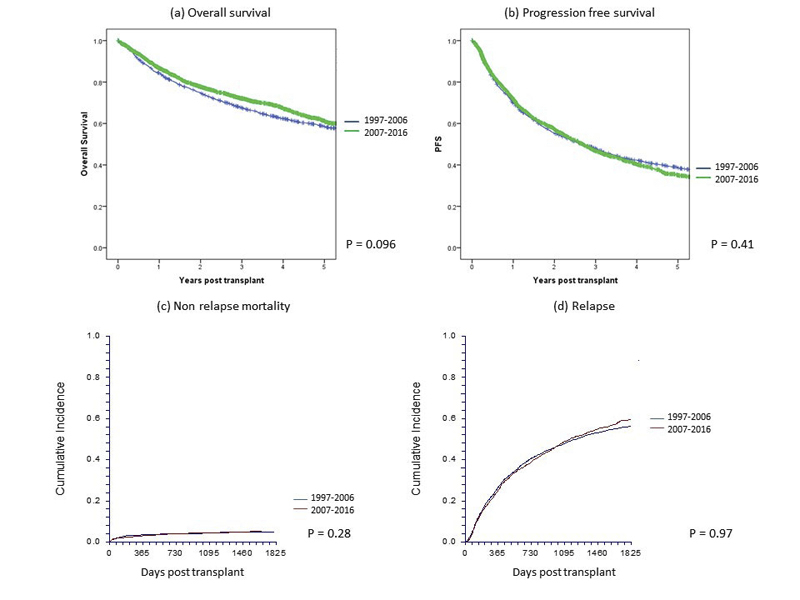 Table 3b Multivariate analysis of overall survival, progression free survival, nonrelapse mortality and relapse for autologous haematopoietic cell transplants for the years 1997–2016.