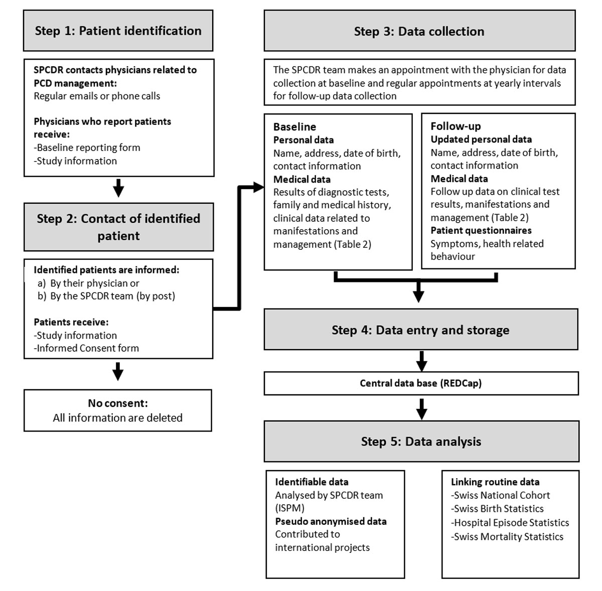 Figure 1 Schematic chart of patient identification and data collection for the Swiss PCD registry.