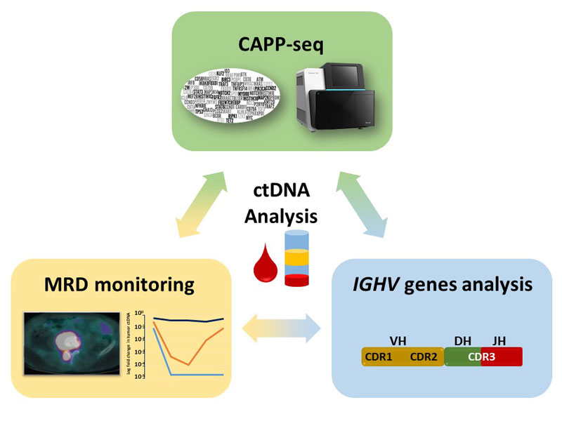 Through these novel methods, disease-specific mutations can be detected in ctDNA at diagnosis and followed throughout the course of the disease to quantitatively monitor tumour dynamics during treatment and to detect emergent mutations that may represent clonal evolution and/or herald resistance to targeted therapy.