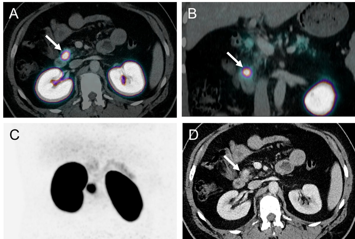 4 Deroose CM , Hindié E , Kebebew E , Goichot B , Pacak K , Taïeb D , et al. Molecular Imaging of Gastroenteropancreatic Neuroendocrine Tumors: Current Status and Future Directions. J Nucl Med. 2016;57(12):1949–56. doi:.https://doi.org/10.2967/jnumed.116.179234