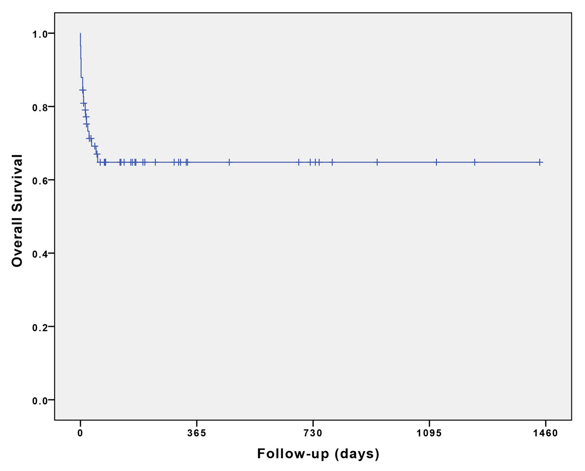 Figure 2A Kaplan-Meier curves for overall cumulative survival curve (n = 58).