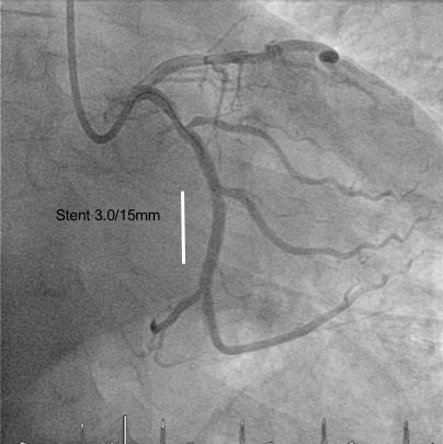 Figure 2b Intra-arterial coronary angiogram after drug eluting stent placement.