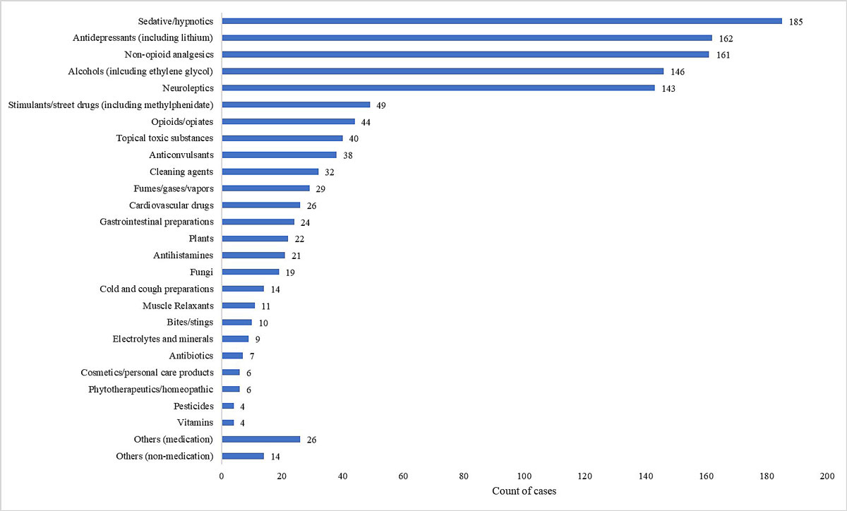 Figure 2 Involved agents/substances by number of cases (more than one agent involved in some cases).