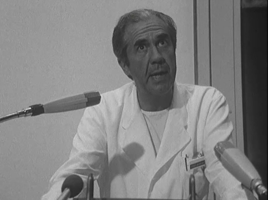 Figure 1 Åke Senning during the press conference held in the auditorium of the former Cantonal Hospital Zurich after the first successful heart transplantation in Switzerland on 14 April 1969 (Source: SRF).