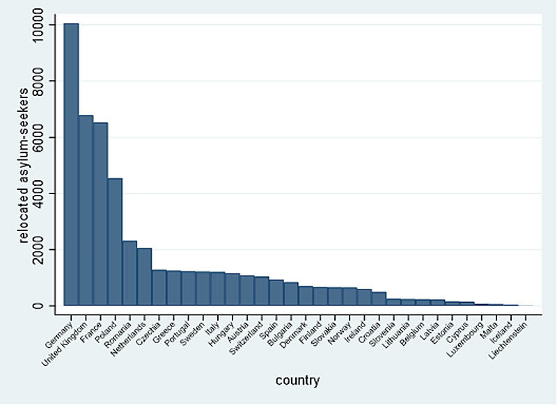 Figure 4 Number of asylum seekers the 32 European and associated countries are required to accommodate. Distribution was calculated based on population size and current death rates due to COVID-19. Countries with death rates below 20 per 100,000 receive 12 asylum-seekers per 100,000 inhabitants; those with death rates between 20 and 35 per 100,000 receive 10 asylum-seekers per 100,000 inhabitants and countries with death rates above 35 per 100 000 receive 2 asylum-seekers per 100,000 inhabitants. Graph adapted from the open letter to the European Parliament ([9], https://www.evacuate-moria.com/) with permission from Prof. Bozorgmehr. Mortality rates and population sizes were extracted from Eurostat on 16 April 2020.