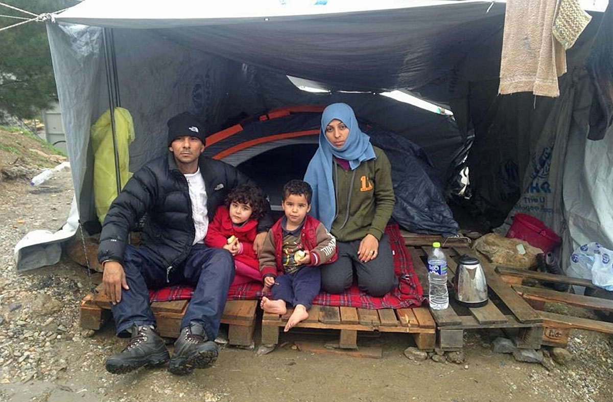 Figure 1 A refugee family currently living in Moria camp in front of their shelter. Photographer: Tricia Vannatter, health promoter; the photograph is published with the consent of the persons depicted.