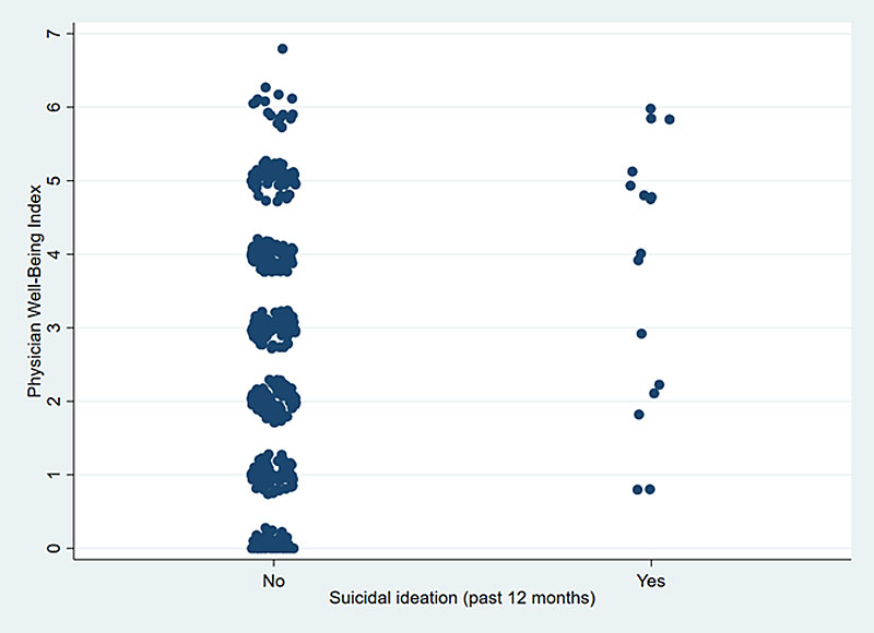 The survey included three parts: (1) the collection of personal and work-related characteristics, (2) completion of the seven-item Physician Well-Being Index (PWBI), and (3) assessment of job satisfaction, recent suicidal ideation, self-reported medical errors and intention to leave clinical practice.