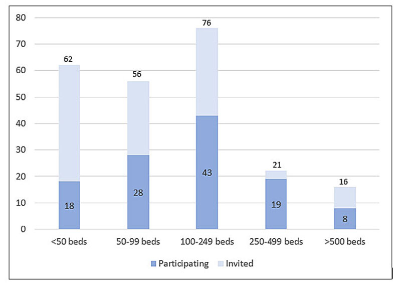 All survey responses were included in the data analysis using the R statistics program, version 3.5.3 [29]. Descriptive analyses were performed on frequencies and percentages, while comparisons regarding hospital size and type used Fisher’s exact test.