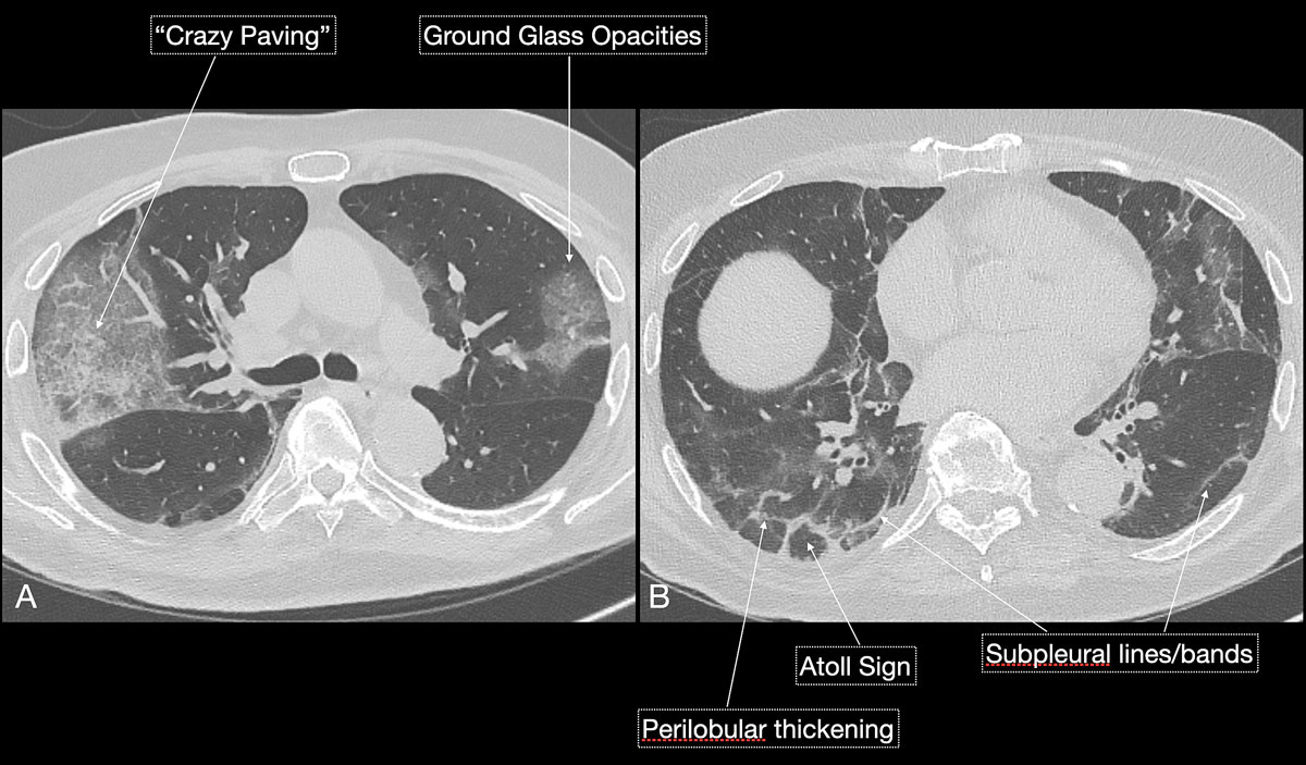 Classical COVID-19 | 100% | Ground glass opacities: lower lobe, peripheral predominant, bilateral |