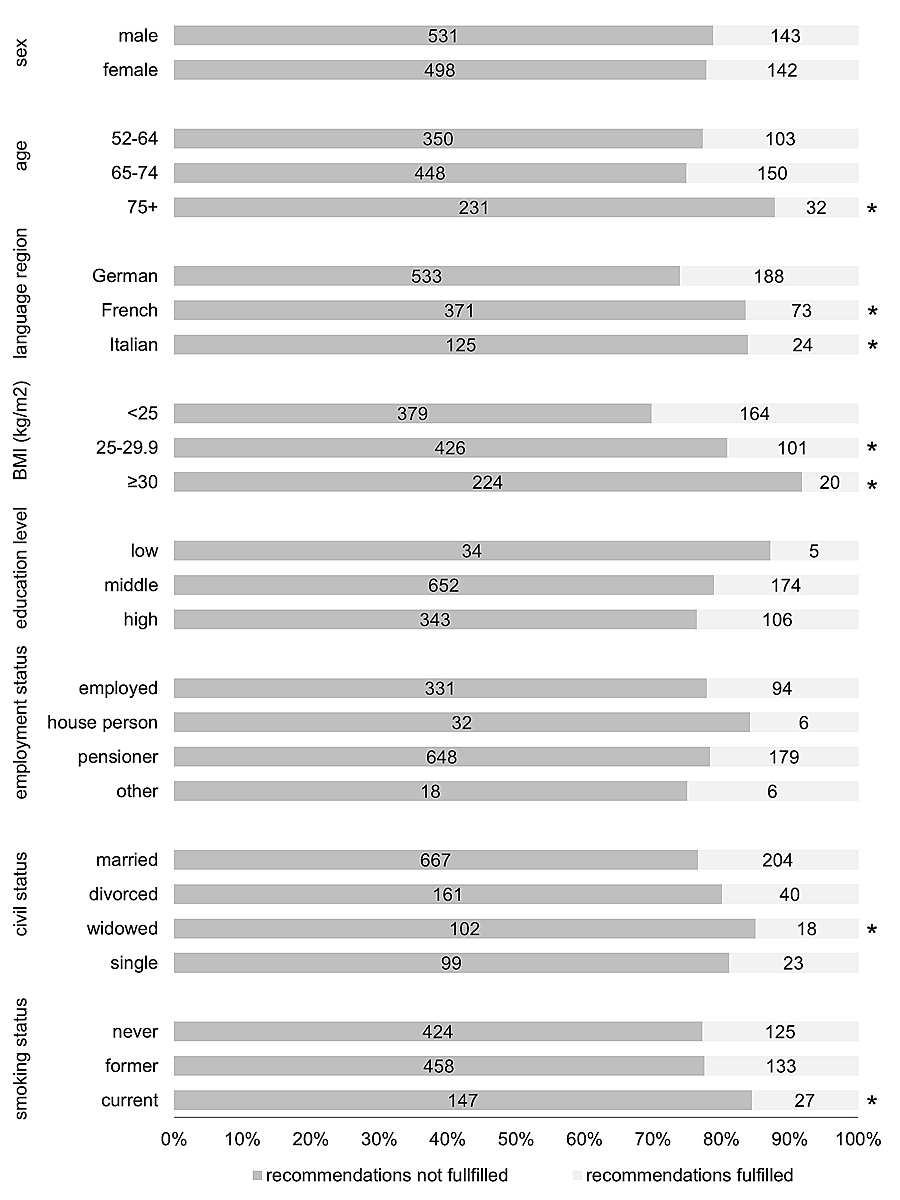 In a third step, the distribution by sex and age for SB and PA determinants (BMI, language, education, civil, employment and smoking status) were analysed, using chi2-tests.