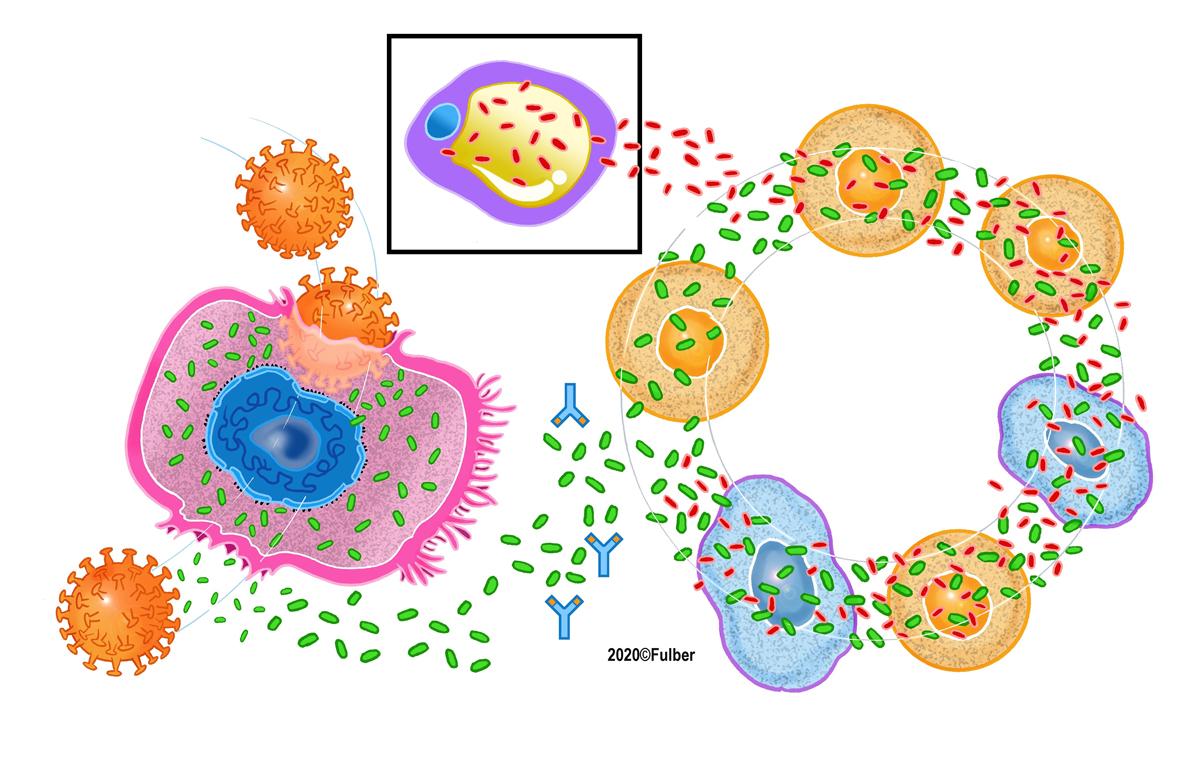 Figure 1 highlights what happens: when the virus enters the cell, the cell reacts by producing a large amount of inflammatory cytokines that trigger a vortex of reactions between the various cells of the system: the cytokine storm.
