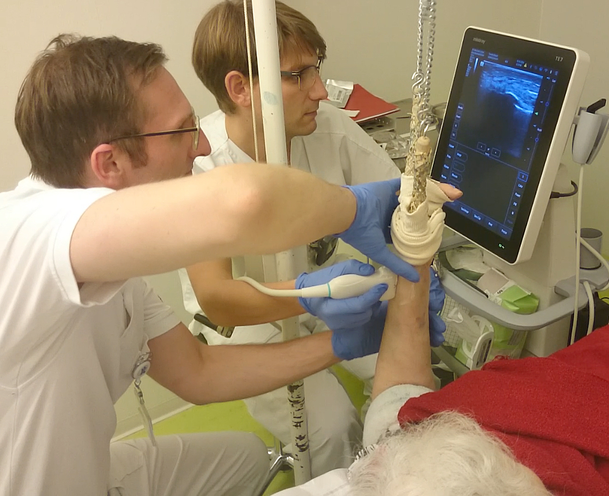 The primary goal (endpoint) was to anaesthetise and perform the fracture reduction by means of ultrasound in the emergency department (feasibility). The next endpoint was the minimisation of operative interventions in these patients (effectiveness). Procedure-related complications such as nerve injuries, bleeding, infections and pneumothoraces were listed (safety).