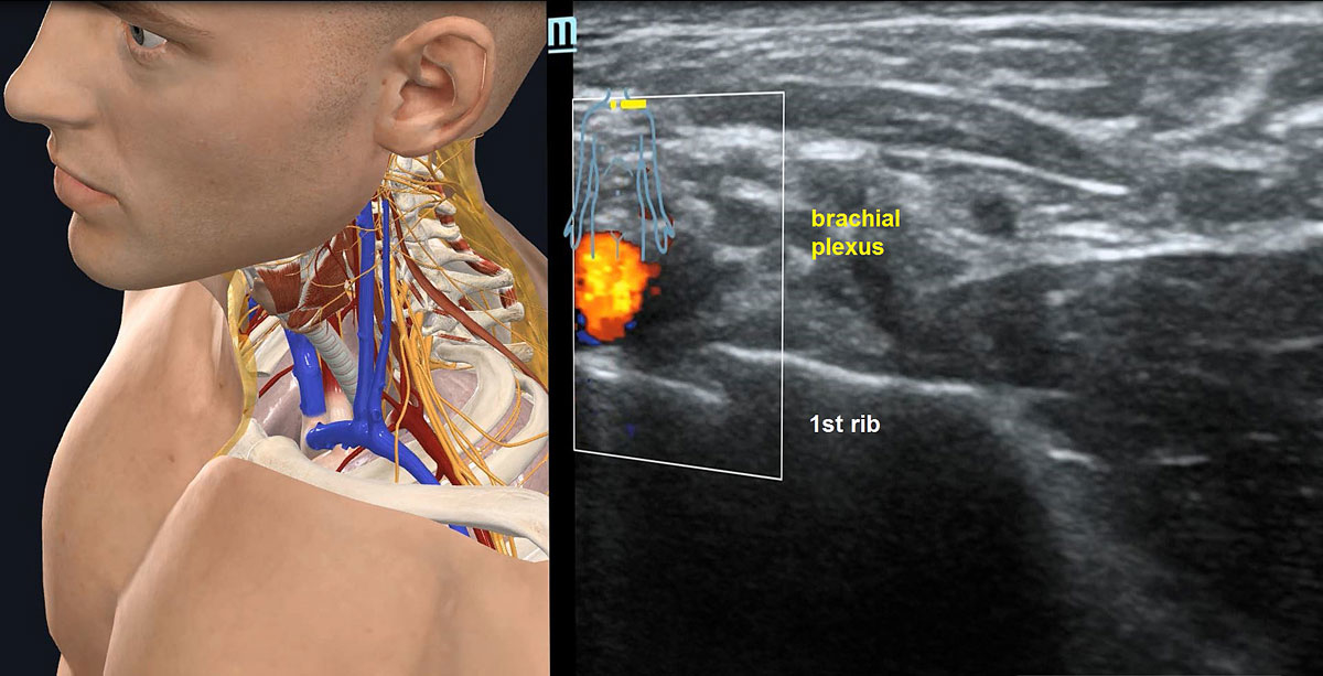 Figure 2 Anatomical schema and Doppler ultrasound image of the brachial plexus.