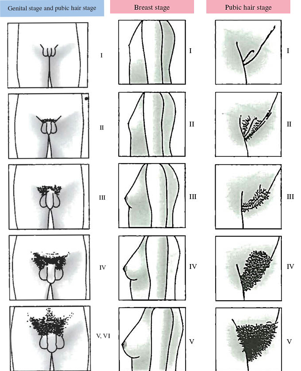 Figure 1 A schematic drawing of the five Tanner stages for girls and boys. From: Jaruratanasirikul S, Kreetapirom P, Tassanakijpanich N, Sriplung H. Reliability of pubertal maturation self-assessment in a school-based survey. J Pediatr Endocrinol Metab. 2015;28(3-4):367-74, reprinted with permission.