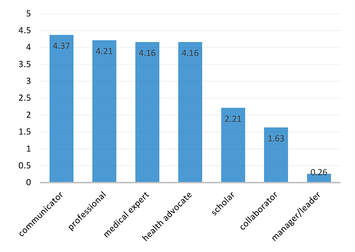 Figure 2 Residents’ ranking of their perceived proficiency of each CanMEDS role. Values correspond to the average score of the rankings (19 observations): 6 = best mastered role; 0 = least mastered role.