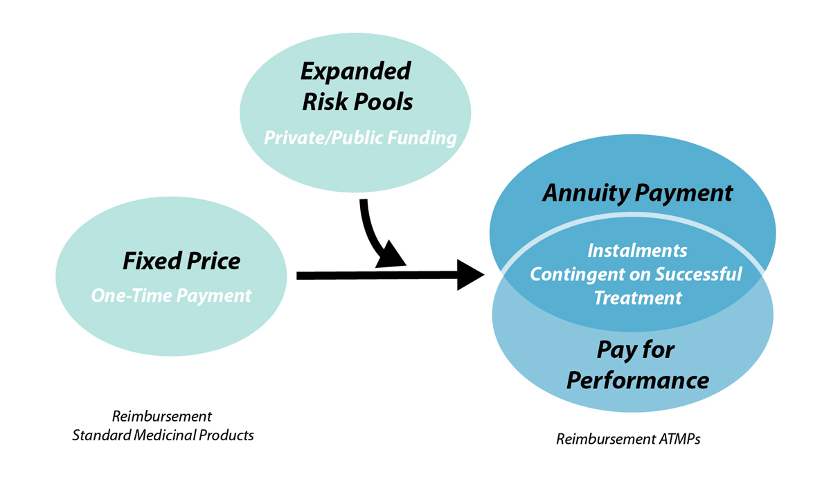 In conclusion, the performance-based shared risk model facilitates a smoother transition from generic therapies such as chemotherapy to highly personalised treatments tailored to the patient and the disease, which eventually promise a better outcome and decreased side effects. The proposed model ensures that the high compensation for ATMPs is matched with a corresponding return and any risks are shared between the pharmaceutical company and payers, which is not the case at the moment. The performance-based shared risk model is intended as an option to allow tailor-made reimbursement for tailor-made therapies.