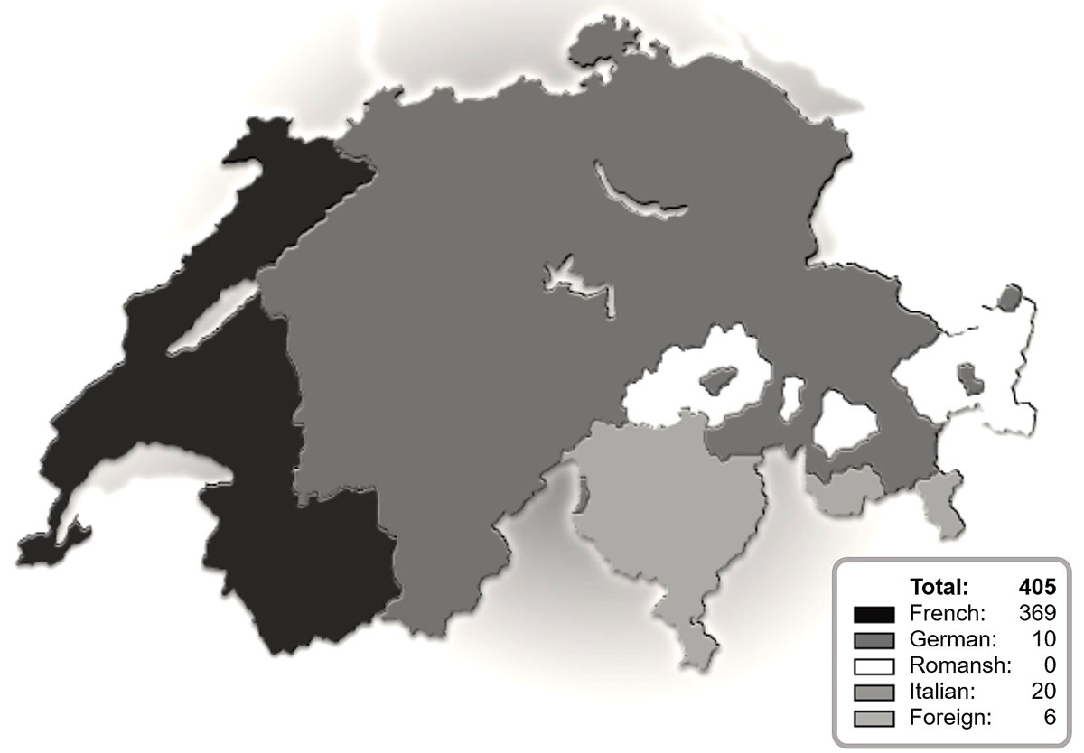 A total of 405 patients and practitioners from Switzerland, France and Belgium contacted the centre during the study period. Most requests were from the French- and Italian-speaking parts of Switzerland (fig. 1). The activity of the centre increased notably in 2014 (fig. 2).