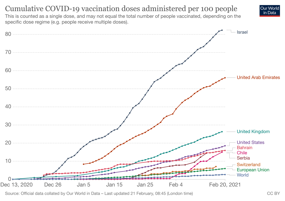 Figure 2 Cumulative COVID-19 vaccination doses administered by country.
