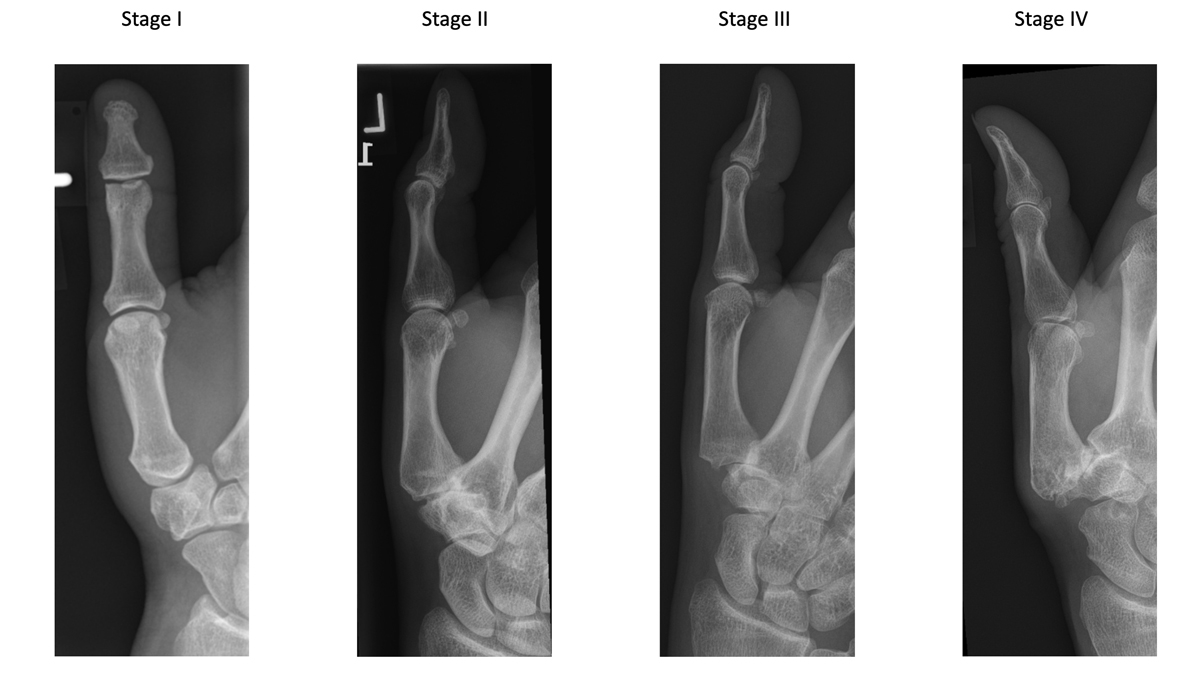 Figure 1 Eaton/Littler classification of trapeziometacarpal osteoarthritis.