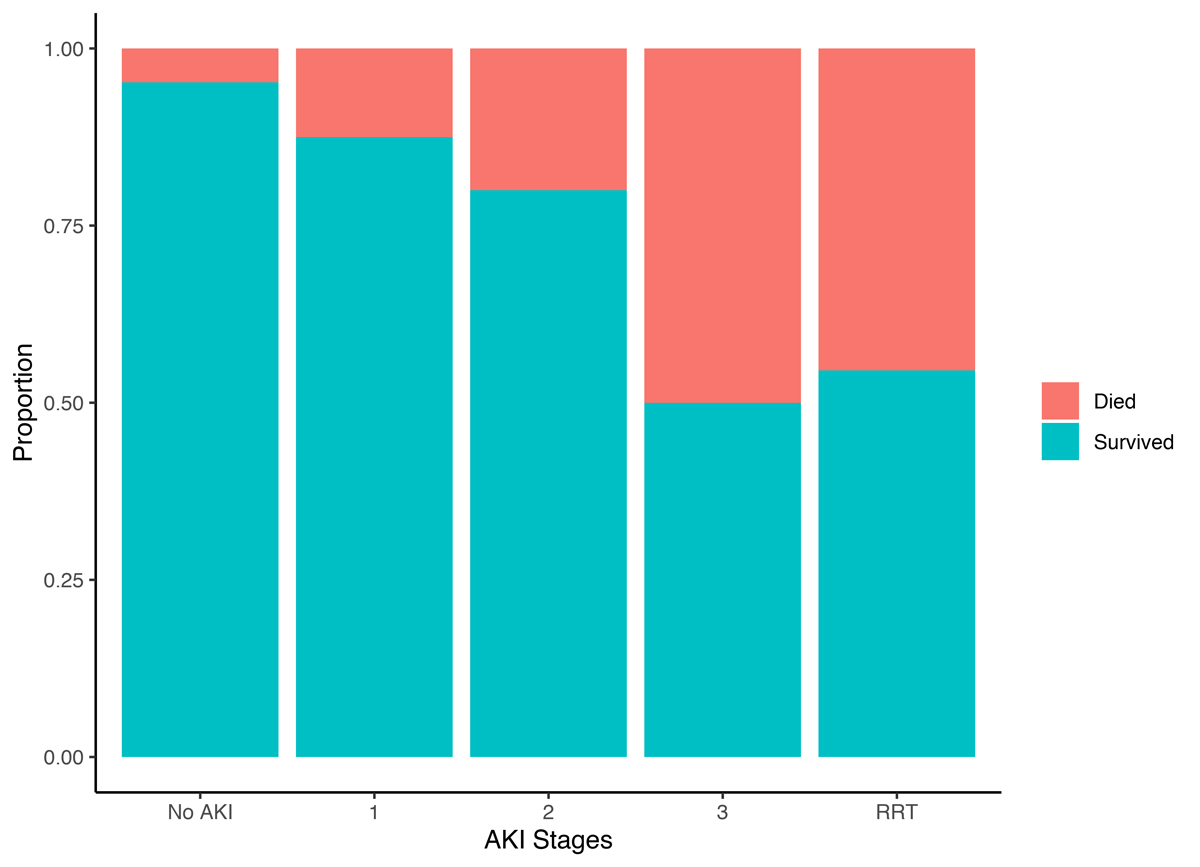 Figure 2 Mortality according to stage of acute kidney injury (AKI).