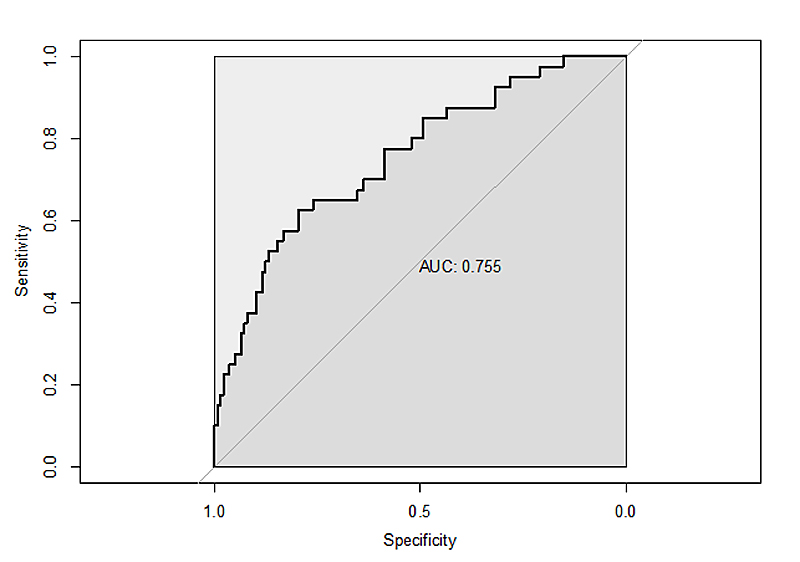 Figure S1 Receiver operator characteristics (ROC) curve for the prediction model for acute kidney injury in patients with COVID-19.