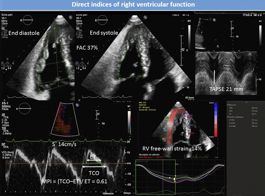 Despite advances in other techniques, resting two-dimensional transthoracic echocardiography (TTE) remains key in the diagnosis, screening and follow-up of pulmonary hypertension (PH) [1]. Whereas TTE was used at first to estimate PH probability, it can also be used to determine the possible cause of PH and to evaluate right ventricular (RV) morphology and function. Nevertheless, in recent years, the reliability of TTE to estimate pulmonary pressure has been challenged [2–4] and recent algorithms proposing serial noninvasive risk assessment in pulmonary arterial hypertension (PAH) dismissed TTE [5, 6]. On the other hand, advanced techniques such as right ventricular strain assessment by speckle tracking imaging and new concepts like indirect right ventricle – pulmonary artery (PA) coupling evaluation improved the ability of TTE to predict outcome and to further understand the intimate relationship between the heart and pulmonary circulation.