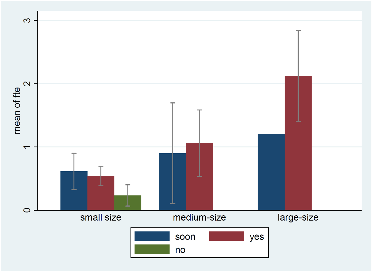 Figure 2 Fulltime equivalents (FTEs) dedicated to healthcare-associated infection surveillance by hospital size, stratified by willingness to participate as a pilot hospital in a national surveillance network